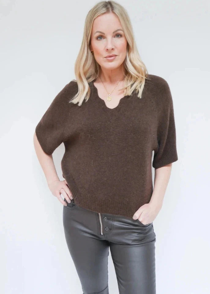Angela Scallop Neck Knit Chocolate