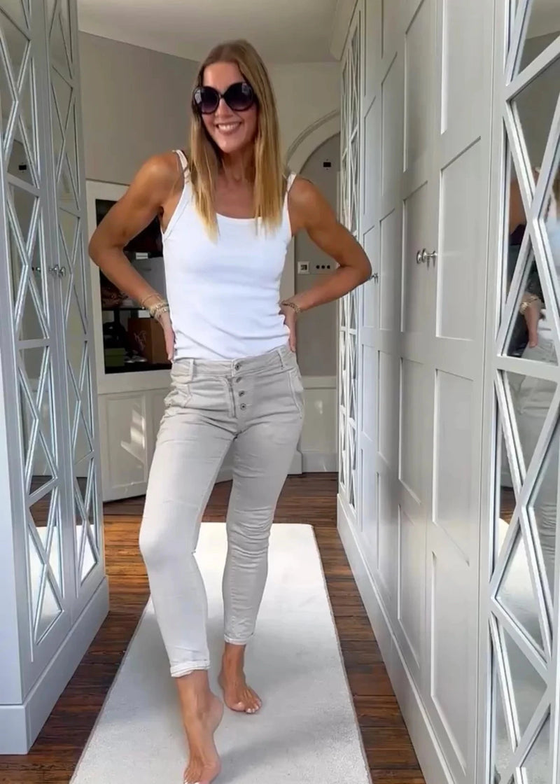 Melly & Co Stone 4 Button Hole Detail Jeans